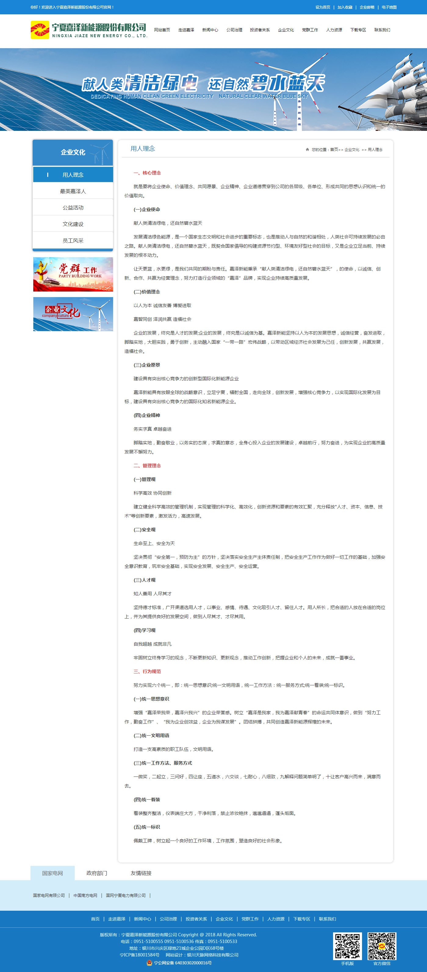 寧夏嘉澤新能源股份有限公司是致力于綠色能源開(kāi)發(fā)的大型民營(yíng)發(fā)電企業(yè)。公司主要業(yè)務(wù)涉及風(fēng)力及太陽(yáng)能發(fā)電產(chǎn)業(yè)的建設(shè)與開(kāi)發(fā),包括風(fēng)力發(fā)電場(chǎng)的投資、建設(shè)、運(yùn)營(yíng)、維護(hù)、風(fēng)