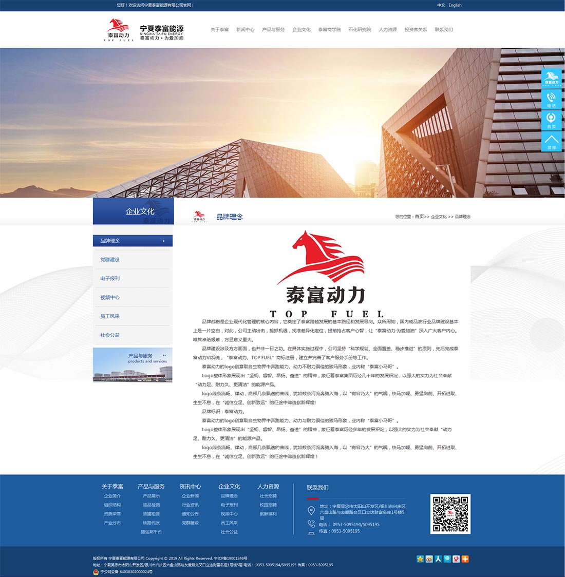 2015年,為積極搶抓國家“一帶一路”重大戰(zhàn)略發(fā)展機(jī)遇期,投資近7.6億元,在寧夏吳忠市太陽山經(jīng)濟(jì)開發(fā)區(qū)先后成立了寧夏泰富能源有限公司、寧夏泰富能源倉儲有限公司、寧夏泰富物流有限公司、寧夏泰富石油石化產(chǎn)品檢驗(yàn)檢測中心有限公司,并取得國家商務(wù)部頒發(fā)的成品油批發(fā)經(jīng)營資質(zhì)、倉儲資質(zhì)、安全生產(chǎn)資質(zhì),擁有獨(dú)立、公正的第三方產(chǎn)品質(zhì)量檢驗(yàn)檢測機(jī)構(gòu)資質(zhì)(CMA)。按照“能源+倉儲+物流+質(zhì)檢”四維一體的運(yùn)營機(jī)制,開展柴油、汽油以及石化產(chǎn)品的生產(chǎn)經(jīng)營業(yè)務(wù)。公司占地面積多達(dá)450余畝,人員規(guī)模達(dá)300余人。